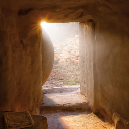 Let us walk through the door.The stone is rolled back, not papier-mache,